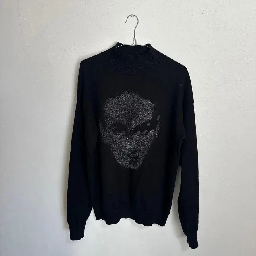 얼굴 프린트가 특징인 블랙 터틀넥 니트. - 색상: 블랙 - 디자인: 얼굴 프린트 - 스타일: 터틀넥 방문해 주셔서 감사합니다. 사이즈 - L
