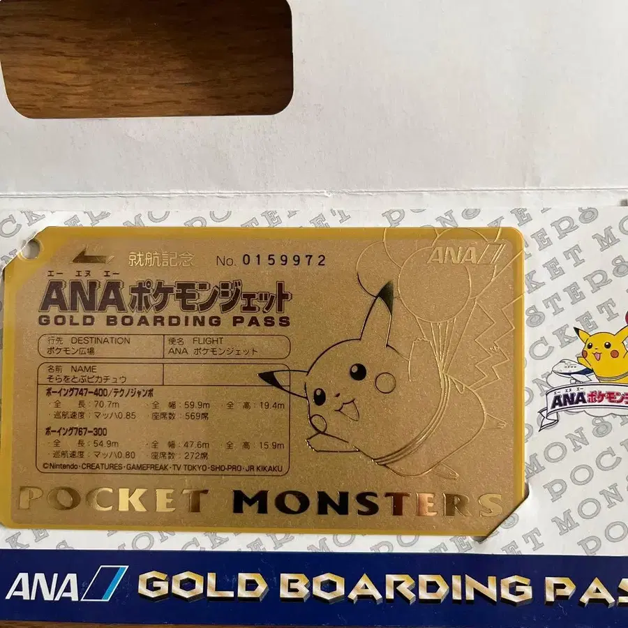 ANA 포켓몬 제트 골드 보딩 패스 (하늘 나는 피카츄)