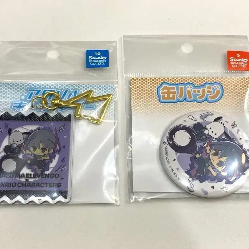 이나즈마 일레븐 GO 슈 x 산리오 포차코 아크릴 키링과 캔뱃지 세트 미개봉 새상품입니다.