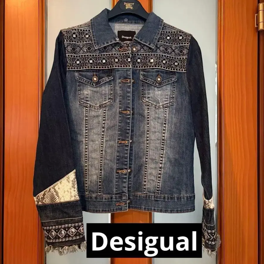 미사용 새상품 Desigual 자수 데님 자켓 S 데시그알 트래커