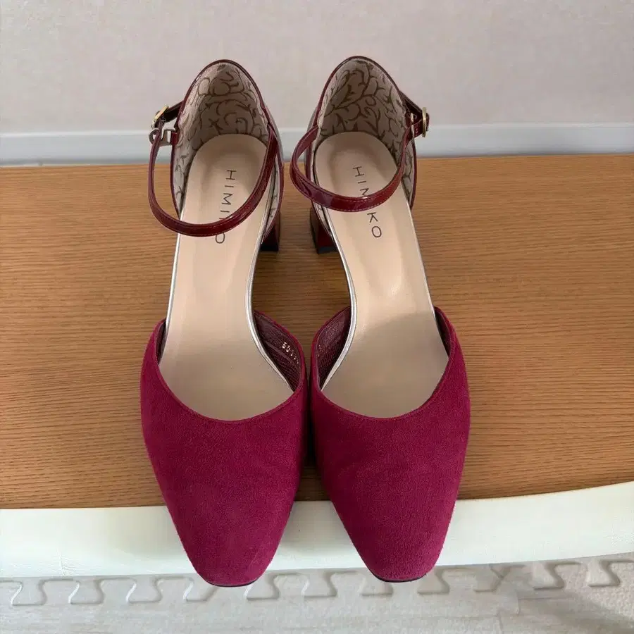 버건디 색상의 스웨이드 소재로, 앵클 스트랩이 달린 중간 높이 힐의 펌프스입니다. 1회만 착용 후 보관했습니다. 상자는 없습니다. - 브랜드: HIMIKO - 색상: 버건디 - 소재: 스웨이드 - 굽 높이: 중간 힐 - 디자인: 앵클 스트랩 방문해 주셔서 감사합니다.