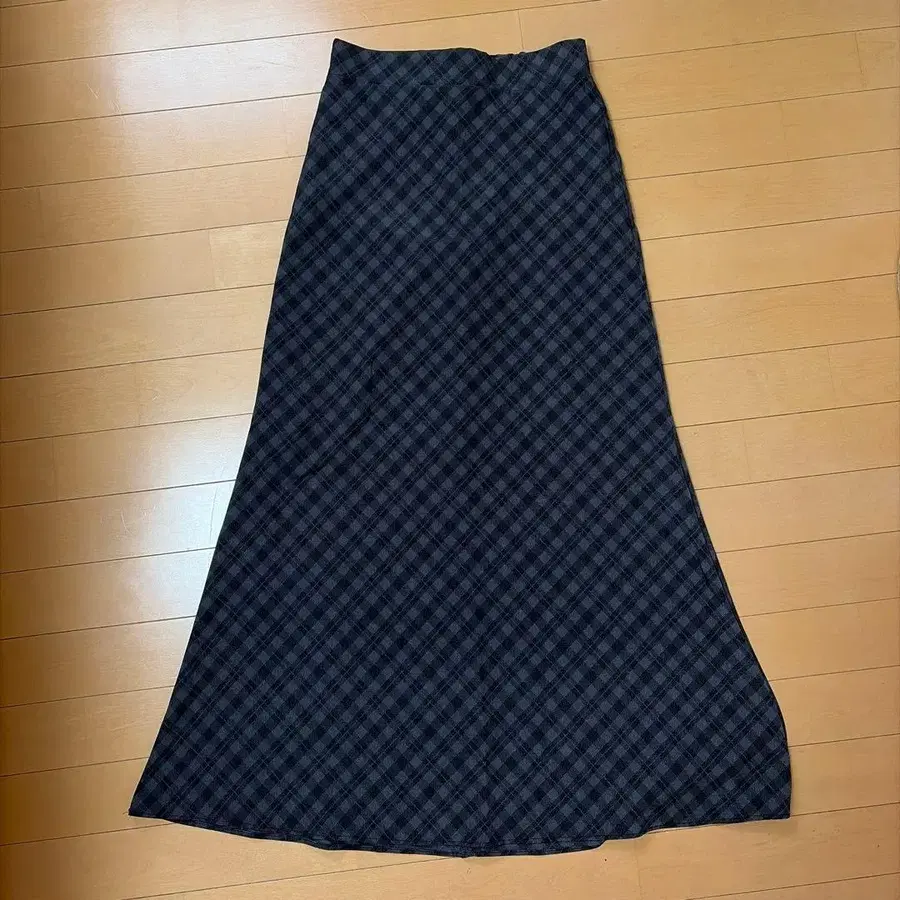 네이비와 블랙 체크 무늬의 롱 스커트.