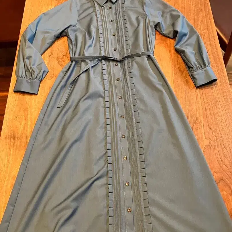Aga 아르가 노카라 셔츠 롱 원피스 블루 긴팔 개더
