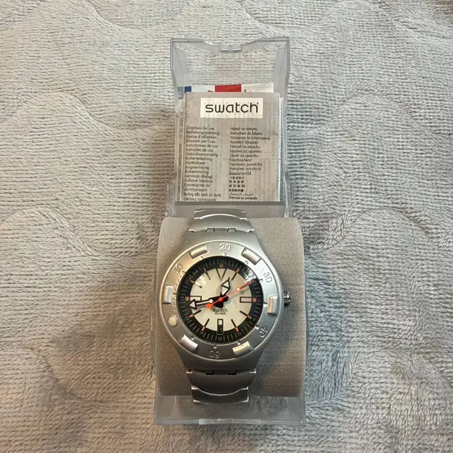 스와치 아이러니 스큐바 200 알루미늄 스위스 유학 시절 구매했습니다. 미사용 상태로 장기간 보관되었던 제품입니다. 작동 보증은 어렵습니다. 다이얼의 유리 부분에 흐릿함이 있지만 다이얼은 보입니다.