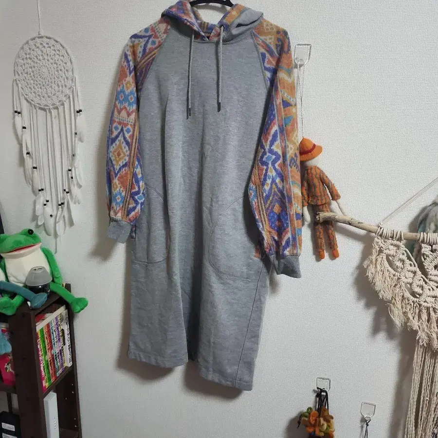 길이도 길어서 원피스로 입을 수 있습니다. 리버서블이라서 앞뒤 패턴이 바뀝니다. 평평하게 놓았을 때 가슴 너비 약 55cm 길이 약 98cm #티티카카 #에스닉 #원피스 #후드티 #리버서블
