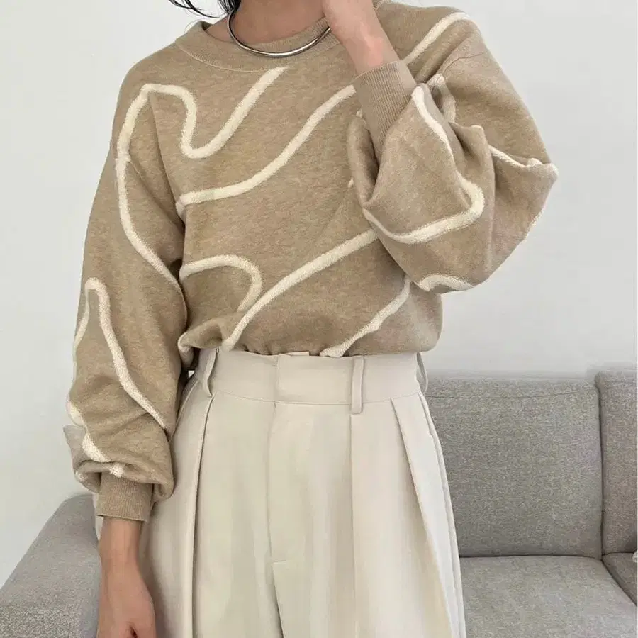 CAPRICIEUX LE'MAGE 카프리슈 레마쥬 ⭐︎ 인기 상품 ⭐︎ 라인 퍼프 니트 베이지 한 번 착용한 새상품급입니다.