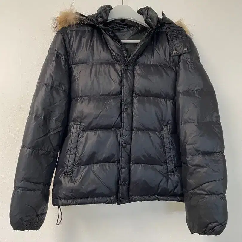 자동 번역되었어요. 원문보기후드와 퍼가 달린 블랙 다운 자켓입니다. 퀼팅 디자인으로 보온성이 뛰어납니다. 소매 부분도 리브로 되어 있어 바람의 유입을 막아줍니다 (6번째 사진 참조).