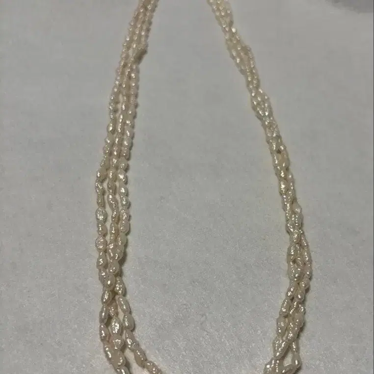 담수 진주 3줄 목걸이 골드 클로징 포함. - 소재: 담수 진주 - 색상: 화이트 - 클로징 소재: 골드 - 디자인: 3줄 목걸이 평평하게 놓았을 때 약 26cm 자택 보관품이므로 사소한 부분을 신경 쓰시는 분은 구매를 삼가해 주시기 바랍니다.