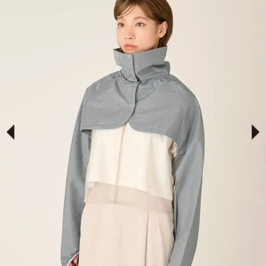 자동 번역되었어요. 원문보기프로스트 그레이 숏 기장 하이넥 자켓, 통기성 있는 메쉬 소재로 쾌적.