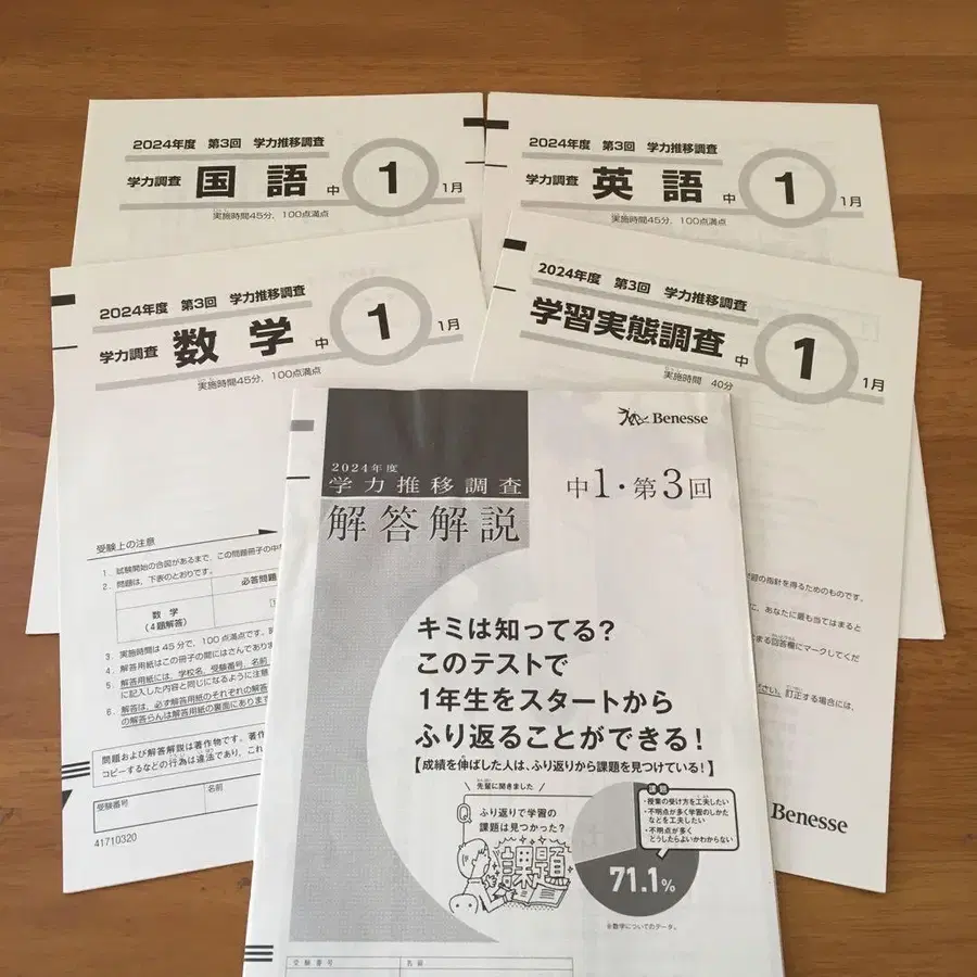 학력 추이 조사 중1 2024년 제3회 1월 베네세