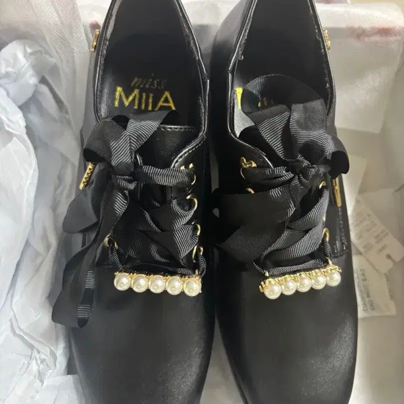 미스미아 펄 리본 매니시 펌프스 캐주얼 신발 사이즈 M