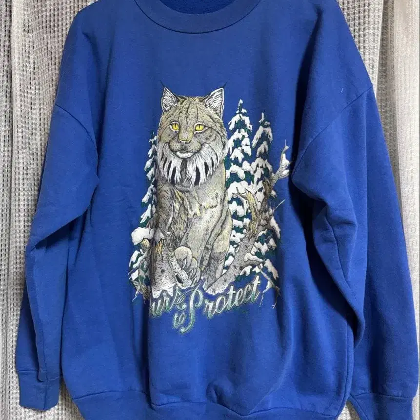 구제 의류 야마네코 고양이 프린트 맨투맨 트레이닝복 파랑 S~M 사이즈