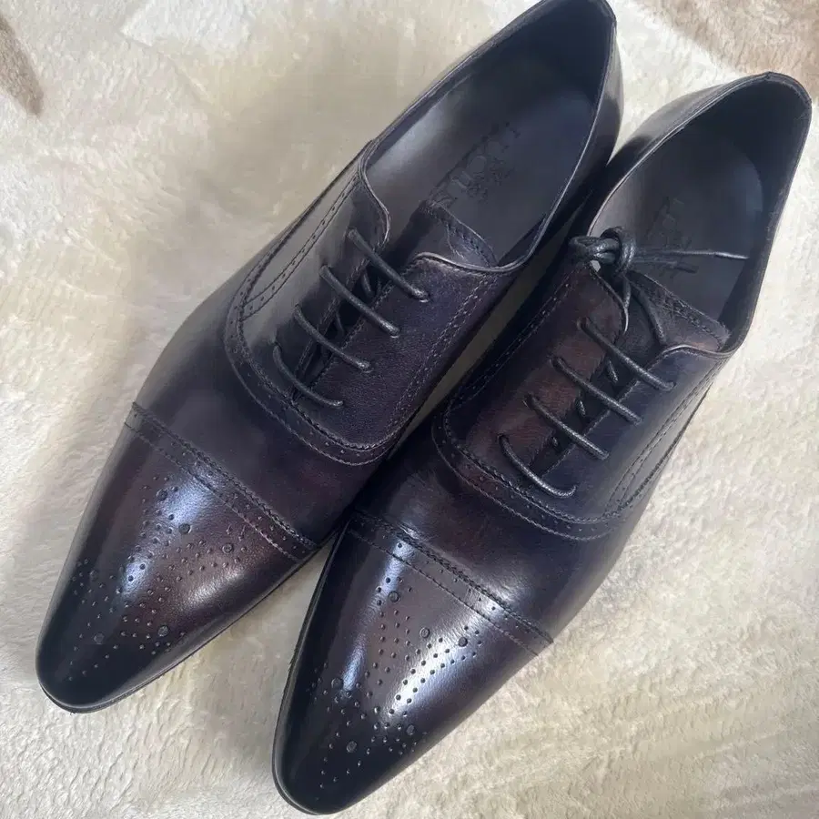 ✨ 미사용 새상품 ✨ 다크 브라운 색상의 천연 가죽 윙팁 드레스 슈즈. - 브랜드: LUCITUS - 색상: 네이비 (보라색에 가까운 색감입니다) - 사이즈: 27cm - 스타일: 드레스 슈즈 - 디자인: 윙팁 - 소재: 천연 가죽 방문해 주셔서 감사합니다. ≪ 주의 ≫ ※ 본 상품은 한 번이라도 사람의 손을 거친 물건(중고품)임을 이해해 주시기 바랍니다. ※ 개인 판매이므로, 상품 수령 후의 대응은 하지 않습니다. 잘 부탁드립니다. 사이즈 - 27cm