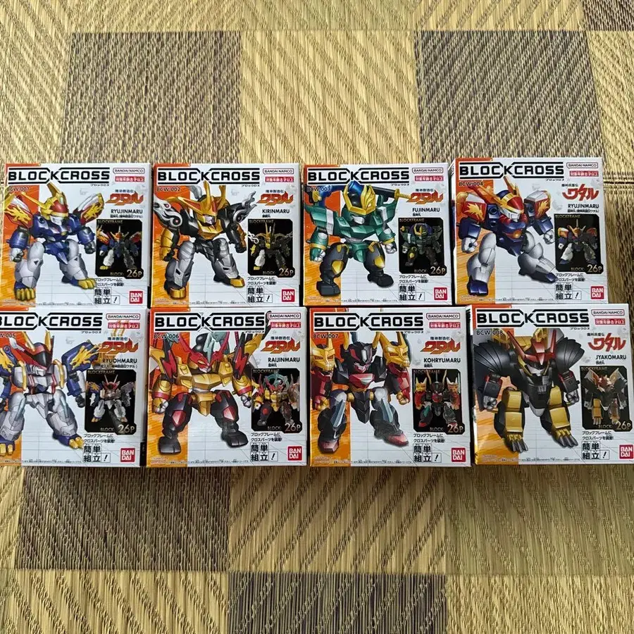 8체의 BLOCKCROSS 시리즈, 각 26개의 블록으로 조립 가능. - 모델명: BLOCKCROSS - 브랜드: BANDAI - 세트 내용: 8체 세트 - 블록 수: 각 26개 방문해 주셔서 감사합니다.