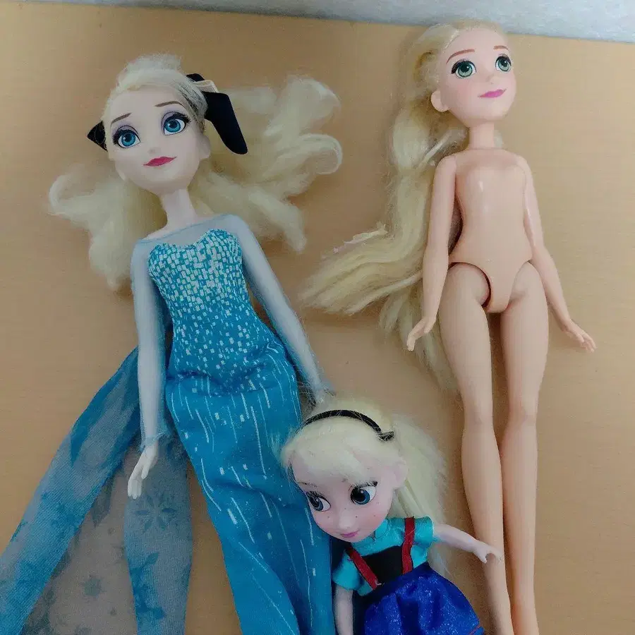 엘사와 안나 인형 세트, 파란색 드레스와 민족 의상이 특징.