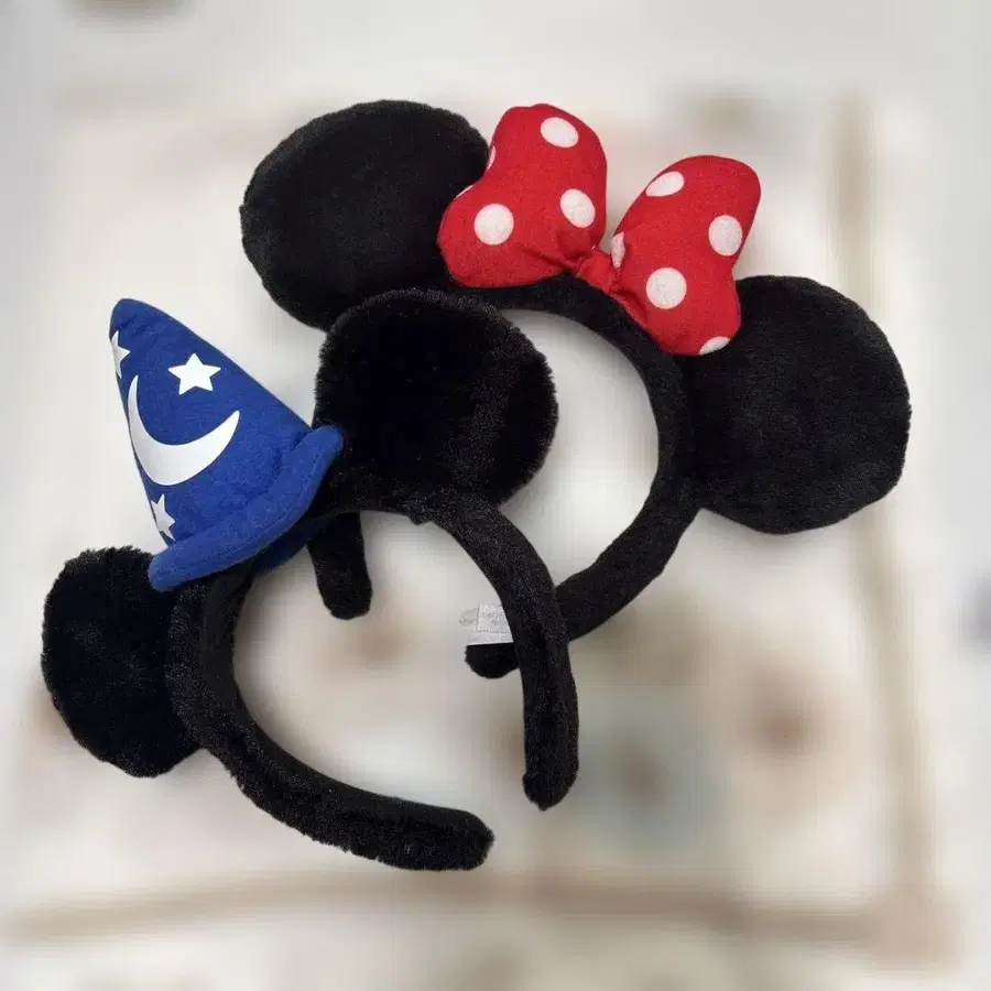 미키 마법사 모자와 미니 리본을 디자인한 머리띠 세트.