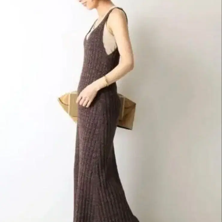 Deuxieme Classe 브라운 리브 슬리브리스 롱 원피스. 스타일리시하고 심플한 디자인입니다. 눈에 띄는 얼룩이나 파손은 없지만, 사용감 있는 중고품입니다.