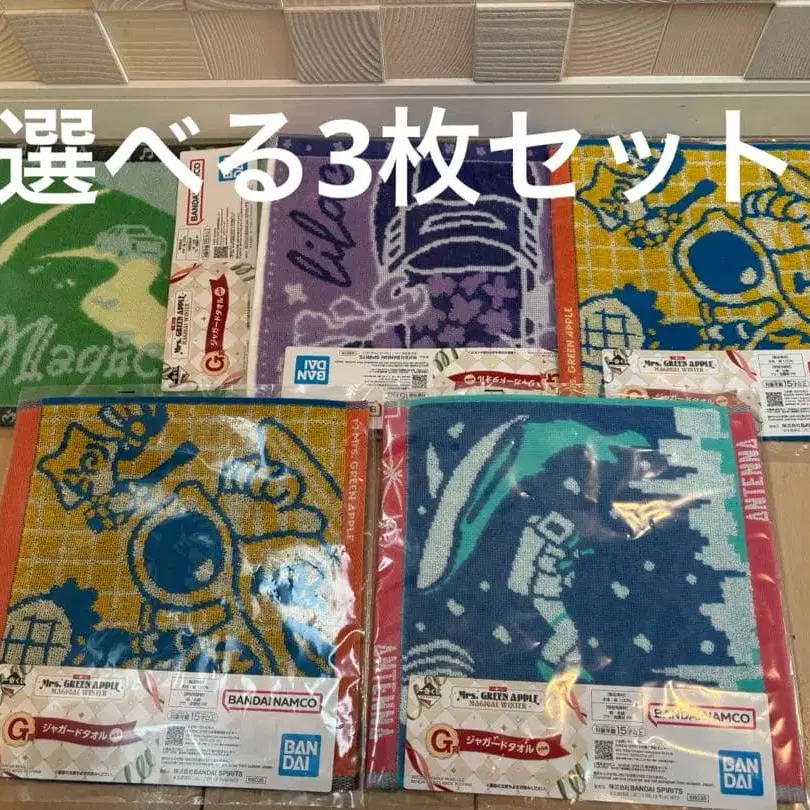 선택 가능한 3장 세트 골라주세요! Mrs. GREEN APPLE 제일복권 MAGICAL WINTER G상 악곡 디자인의 타월 세트입니다. - 브랜드: Mrs. GREEN APPLE - 세트 내용: 제일복권 G상 컴프 세트 - 디자인: 로고, MGA, 라일락, 안테나, 비터 바캉스, 달링 - 제조사: BANDAI NAMCO 장르 - 일본 국내 아티스트 일본 국내 아티스트 - Mrs. GREEN APPLE 미세스 그린 애플 제일복권 오오모리 모토키 와카이 히로토 후지사와 료카