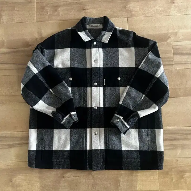 울 혼방의 블랙, 화이트, 그레이 체크 무늬 셔츠 자켓, 사이즈 S. - 브랜드: COOTIE PRODUCTIONS - 사이즈: S - 색상: 블랙, 화이트, 그레이 체크 - 디자인: 체크 무늬 - 소재: 울 혼방 - 스타일: 셔츠 자켓 방문해 주셔서 감사합니다.