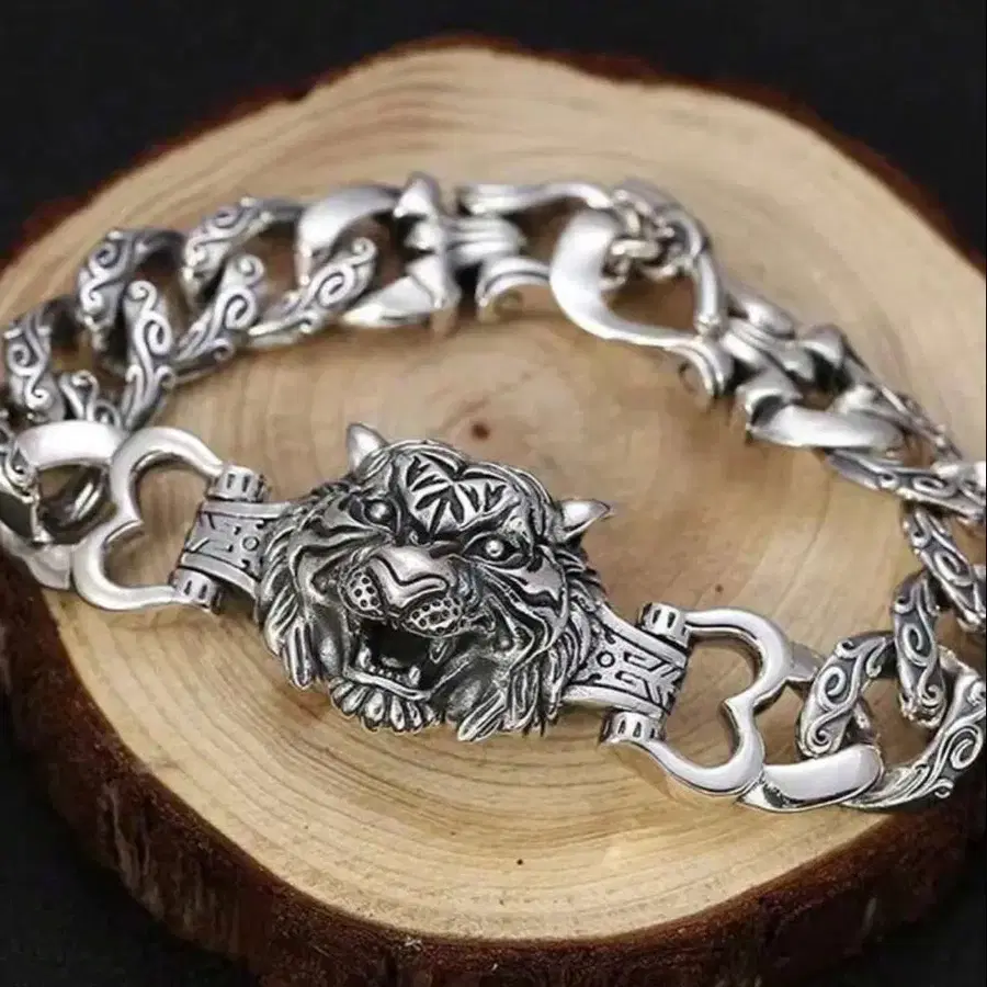 호랑이 머리 디자인 실버 팔찌