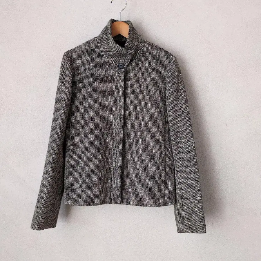 자동 번역되었어요. 원문보기트위드 소재의 그레이 스탠드 카라 자켓으로, 심플하고 엘레강트한 디자인입니다.