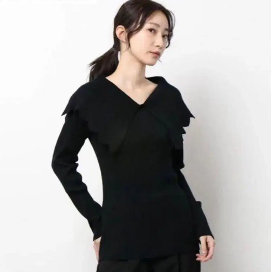 CELFORD 스캘럽 칼라 리브 니트 블랙 36
