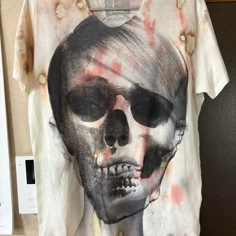 maxsix 스컬 프린트 V넥 T셔츠 L size