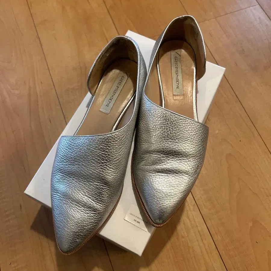 실버 가죽 스틸레토 슬립온, 플랫 힐로 스타일리시합니다. - 색상: 실버 - 디자인: 스틸레토 - 소재: 가죽 - 스타일: 슬립온 - 굽 높이: 플랫 이곳에서 양도받았으나, 저에게는 작아서 포기했습니다. 잘 부탁드립니다.