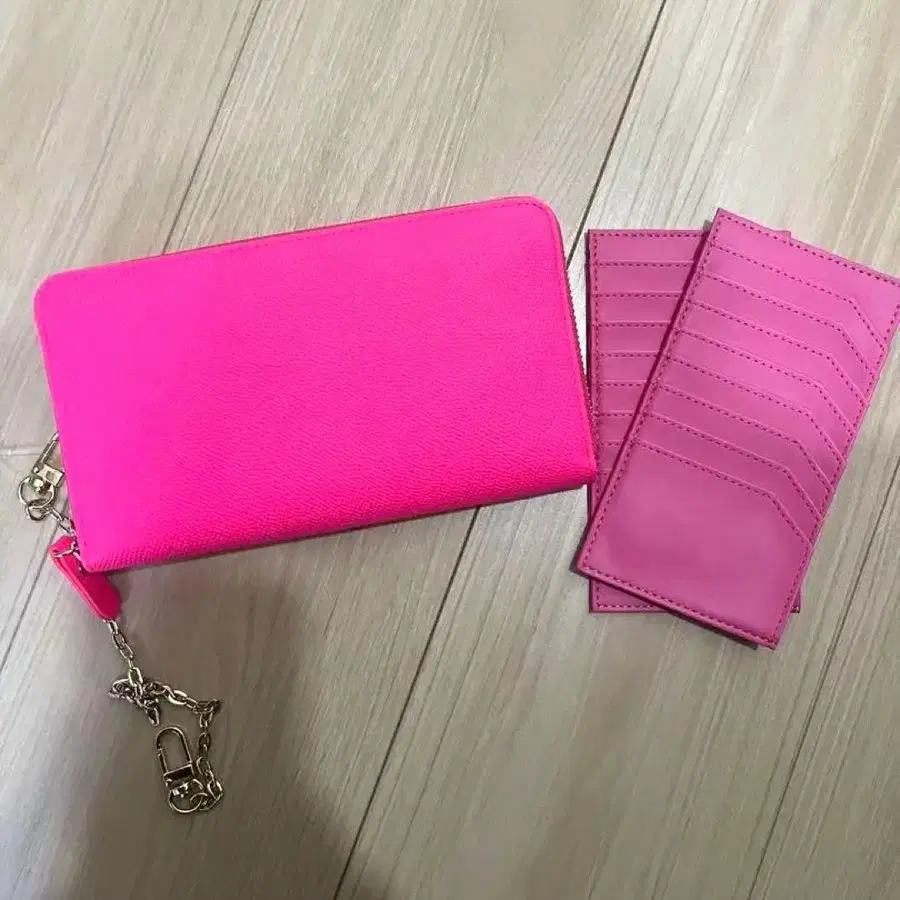 핑크 장지갑 카드 케이스 포함