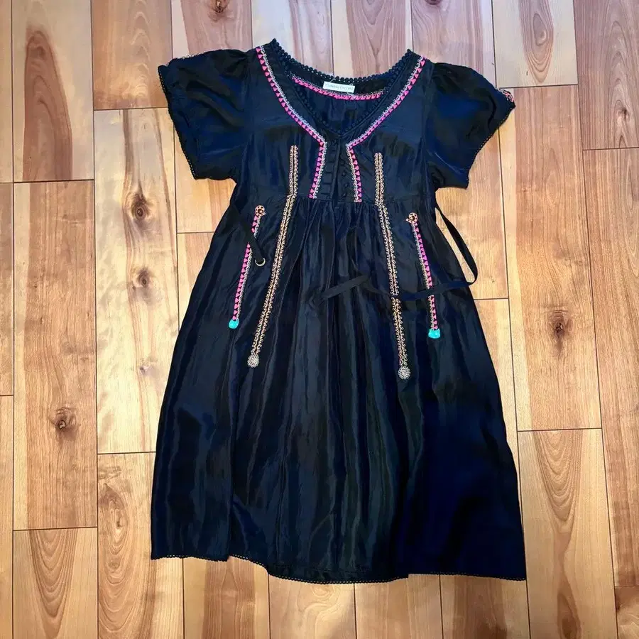 츠모리치사토 자수 장식 블랙 반팔 원피스