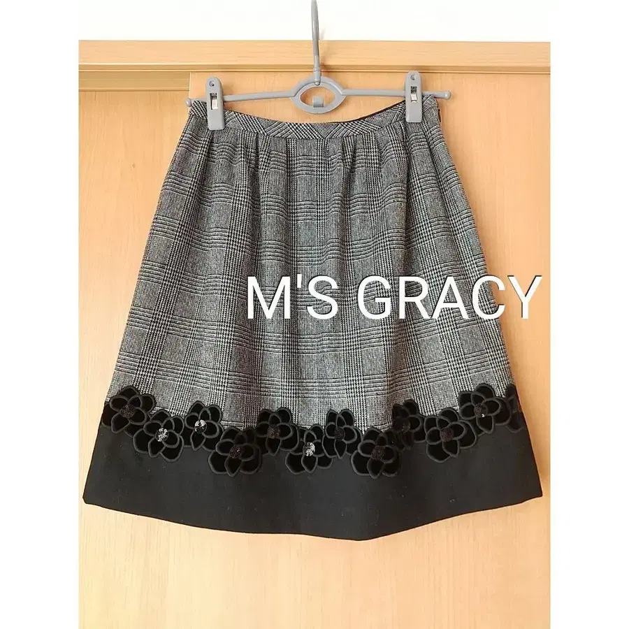 새상품급 M'sGRACY 글렌체크 & 스팽글 꽃 스커트 엠즈 그레이시