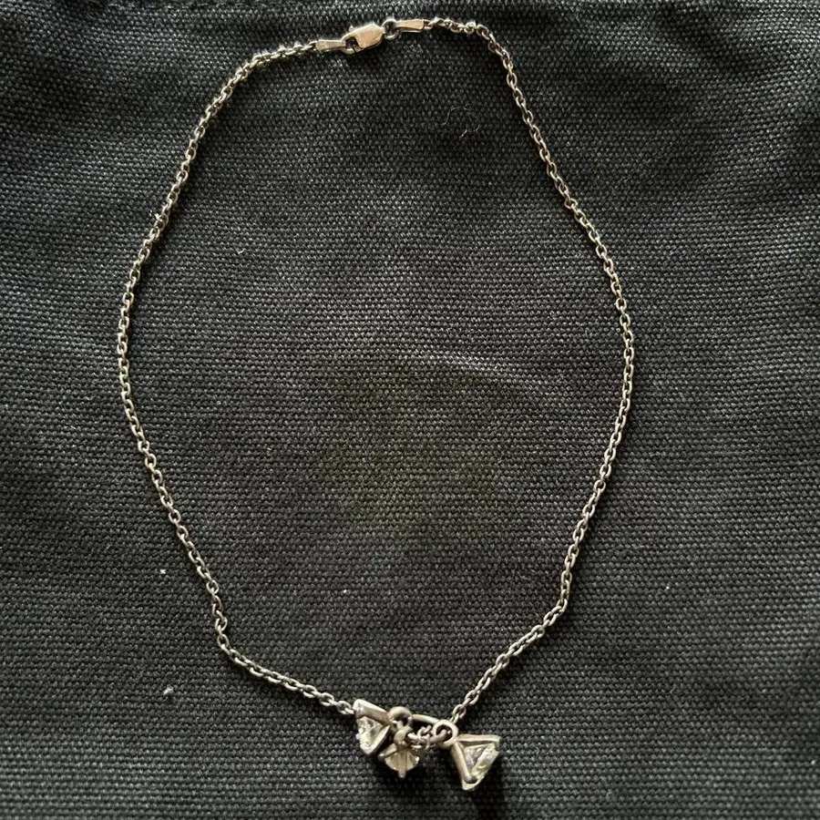 크리스탈풍 스톤이 특징인 목걸이. - 디자인: 앤티크한 느낌의 목걸이 - 소재: 실버 색상의 금속 체인 - 장식: 크리스탈풍 스톤 부착 방문해 주셔서 감사합니다.
