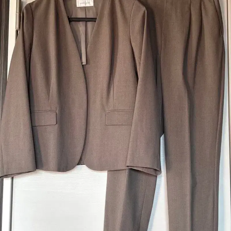 JUNOAH 더블 자켓 & 투 턱 팬츠 셋업 모카