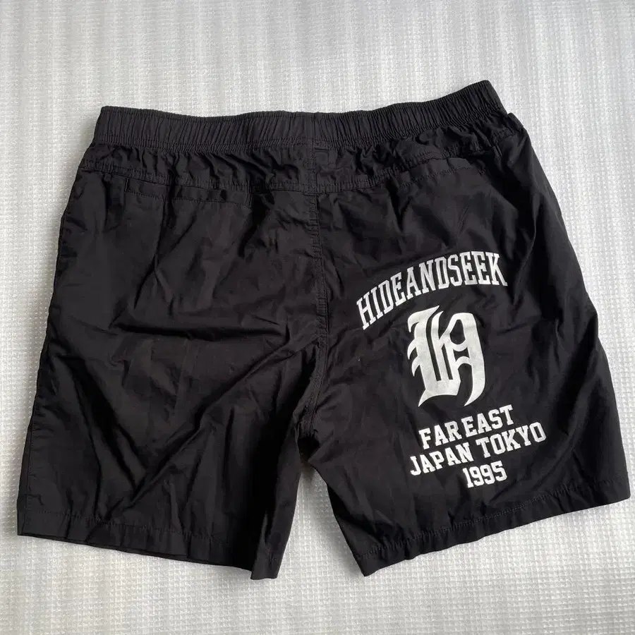 블랙 숏팬츠, FAR EAST JAPAN TOKYO 1995와 TEAMHGS 프린트 포함.