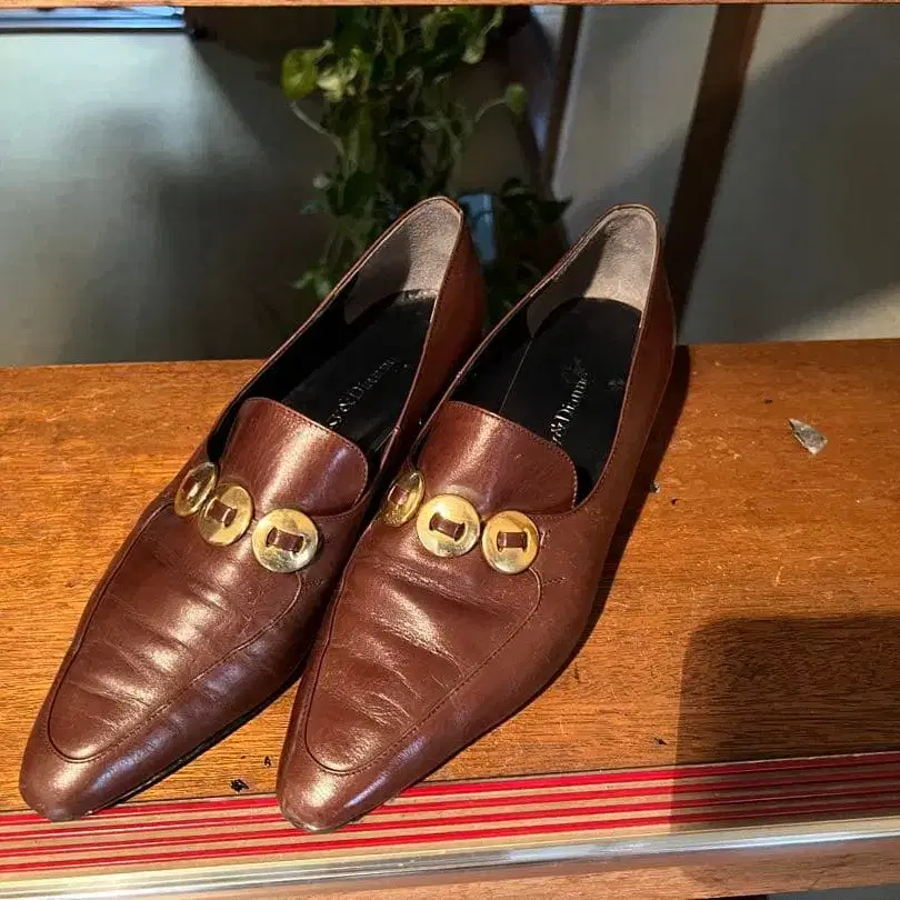브라운 가죽 슬립온, 금장 장식 포함. - 색상: 브라운 - 디자인: 슬립온 - 장식: 금장 장식 포함 - 브랜드: Pinky & Dianne - 소재: 가죽 방문해 주셔서 감사합니다. 사이즈 - 36 1/2 색상 - 레드 계열 얼룩, 찢김, 냄새 등 - 있음 ⚠️ 초간편 배송이므로 이해 부탁드립니다. 사이즈 - 24cm