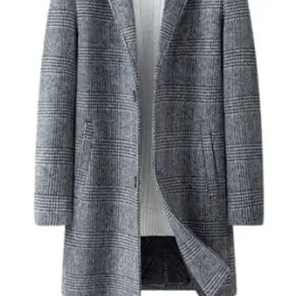 울 혼방 체크 무늬 더블 버튼 코트, 스타일리시한 그레이.
