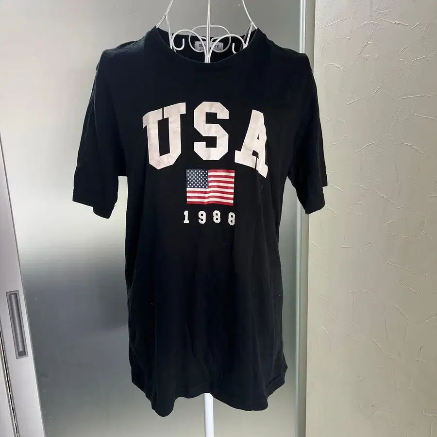 블랙 베이스에 화이트 [USA] 로고와 성조기가 돋보이는 심플한 디자인으로, 어떤 하의와도 매치하기 좋은 아이템입니다. 면 100%로 촉감도 좋으며, 다가오는 계절에 활약할 것입니다.