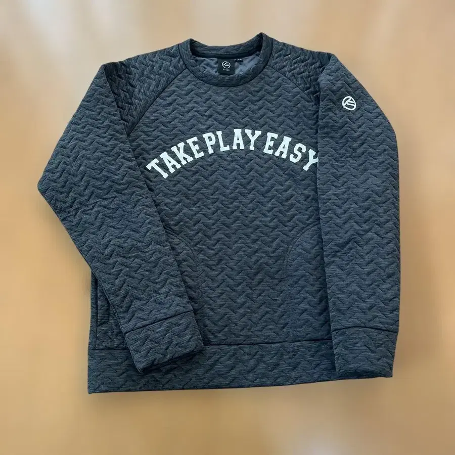 특징: 퀼팅 디자인과 [TAKE PLAY EASY] 자수 로고가 특징입니다.