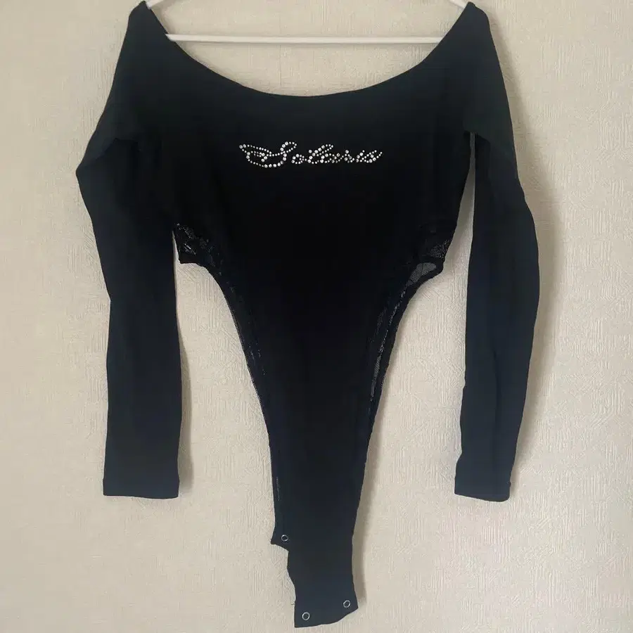 스톤 장식의 블랙 레이스 긴팔 바디수트. 몇 번 시착한 정도라 구매 시와 거의 변함없는 상태를 유지하고 있다고 생각합니다. 아래 부분은 버튼으로 똑딱하고 잠글 수 있는 디자인입니다. 원단은 계절에 상관없이 사용할 수 있으며, 목 부분이 넓어 오픈 숄더 코디에 딱입니다. 집에서 접어서 보관하고 있으므로, 이해하신 후에 검토 부탁드립니다. 방문해 주셔서 감사합니다.