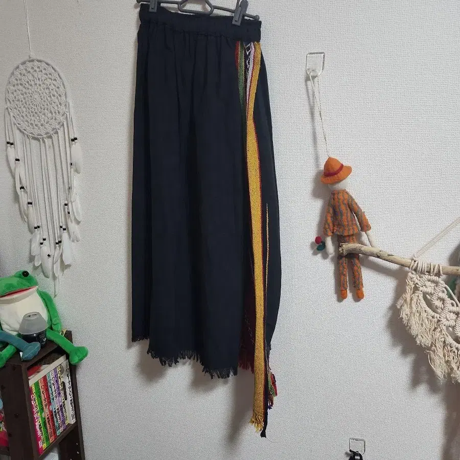 허리밴딩 평평하게 놓음 약 31~51cm max 길이 짧은 부분 약 79cm 긴 부분 약 90cm #에스닉 #아시안 #틴트 #롱 스커트 #변형