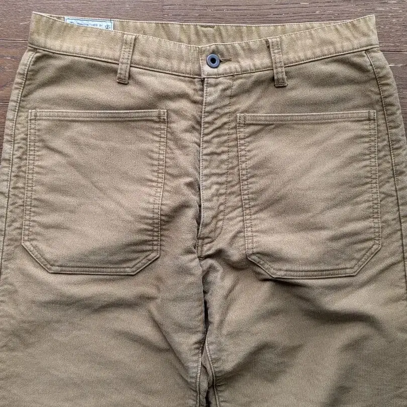 이 상품은 덱 팬츠 초기형으로 두꺼운 치노 크로스 원단입니다. 덱 자켓과 비슷한 원단 느낌입니다. 뒷면은 기모 처리되어 있어 보온성도 있습니다.