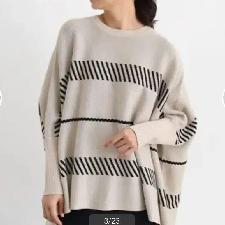 ■ 자카드 직조 라인 디자인이 눈길을 끄는 돌먼 실루엣의 니트