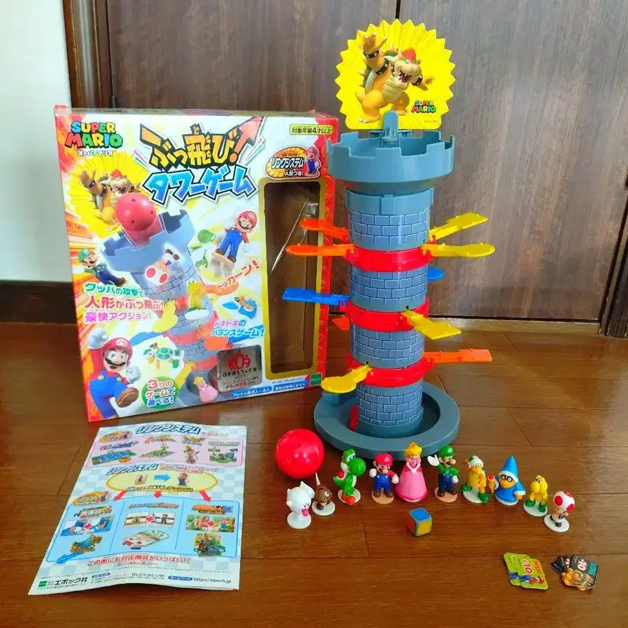 슈퍼 마리오 타워 게임으로, 캐릭터를 떨어뜨리는 액션을 즐길 수 있습니다! - 브랜드: 슈퍼 마리오 - 상품명: 타워 게임 - 부속 캐릭터: 마리오, 루이지, 피치, 요시, 쿠파 등 - 게임 내용: 피규어 10개를 흔든 주사위 색깔의 베이스에 차례대로 놓습니다. 타워가 기울어 공이 떨어지고, 마리오 일행이 날아간 사람의 패배! - 세트 내용: 게임 본체, 캐릭터 인형, 설명서 - 대상 연령: 6세 이상 방문해 주셔서 감사합니다. 몇 번 놀지 않았습니다. 부품 등 전부 갖춰져 있습니다(*^^*) 알코올 소독 완료