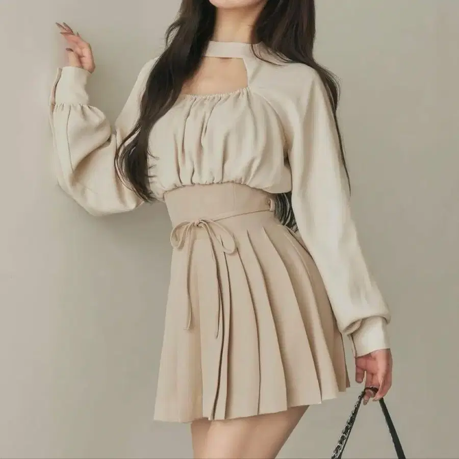Darich 홀더넥 앙상블 미니 원피스 베이지