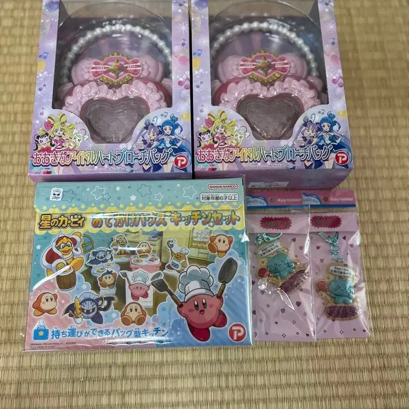 하트 디자인 아이돌 브로치 백 2개 세트, 별의 커비 외출 하우스 키트 키링 2개 모두 세트입니다. 미사용 새상품. 낱개 판매 불가, 선착순 판매.