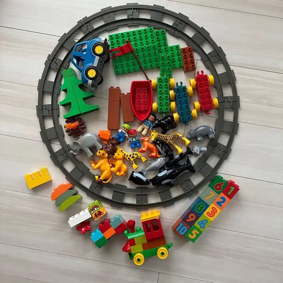 - 세트 내용: 트랙, 동물 피규어, 블록, 숫자 블록, 레일