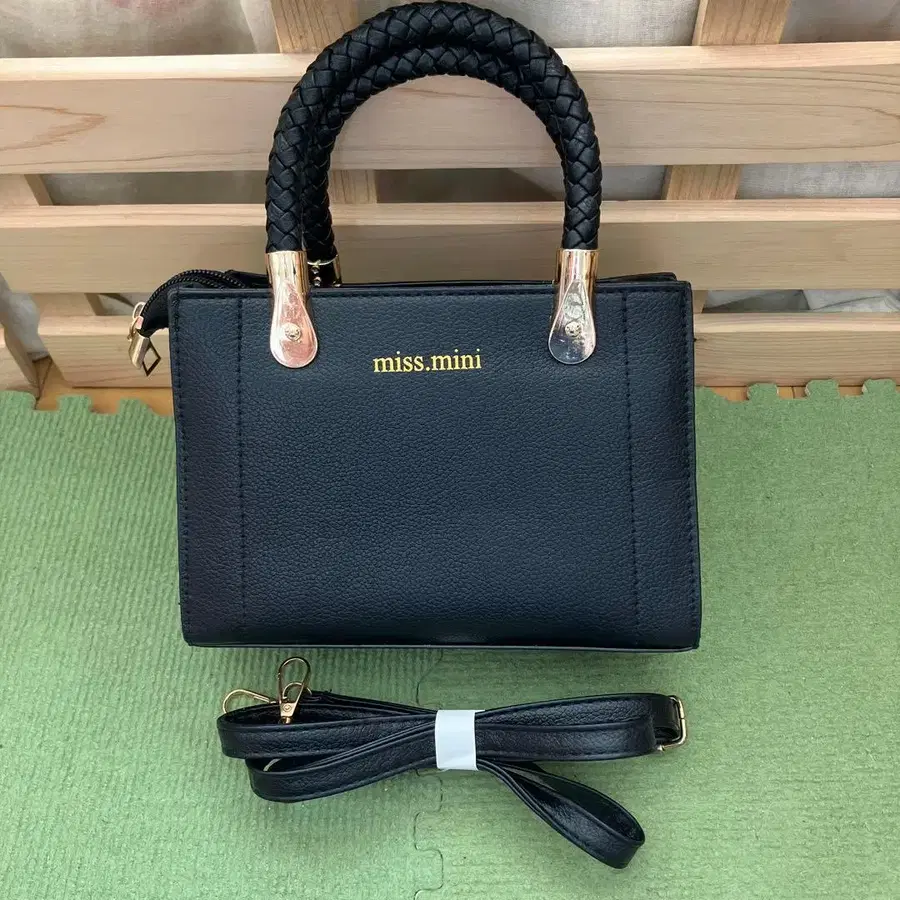 뜨개질 핸들과 2개의 컴파트먼트를 갖춘 심플한 블랙 숄더백.