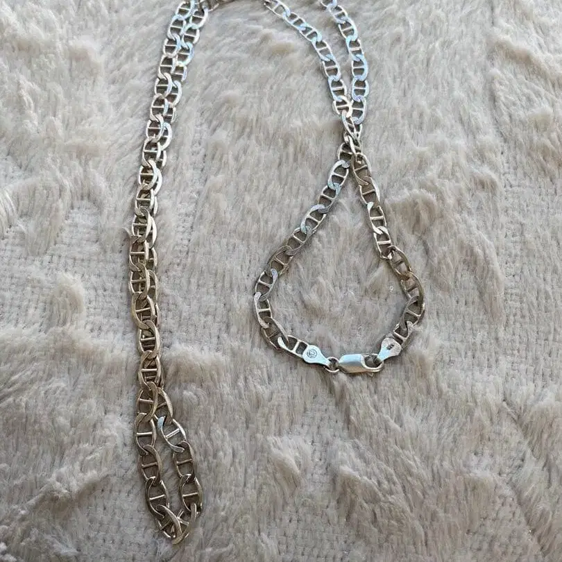 실버 925 목걸이입니다. 중량 30g 정도로 존재감이 있습니다. 실버 가격도 폭등하고 있어 이 정도 중량이라면 새 상품 가격도 상당할 것입니다. 이 기회에 꼭 검토해 주세요. 어디까지나 자택 보관 중고품이므로 이해하신 후 구매를 검토 부탁드립니다.