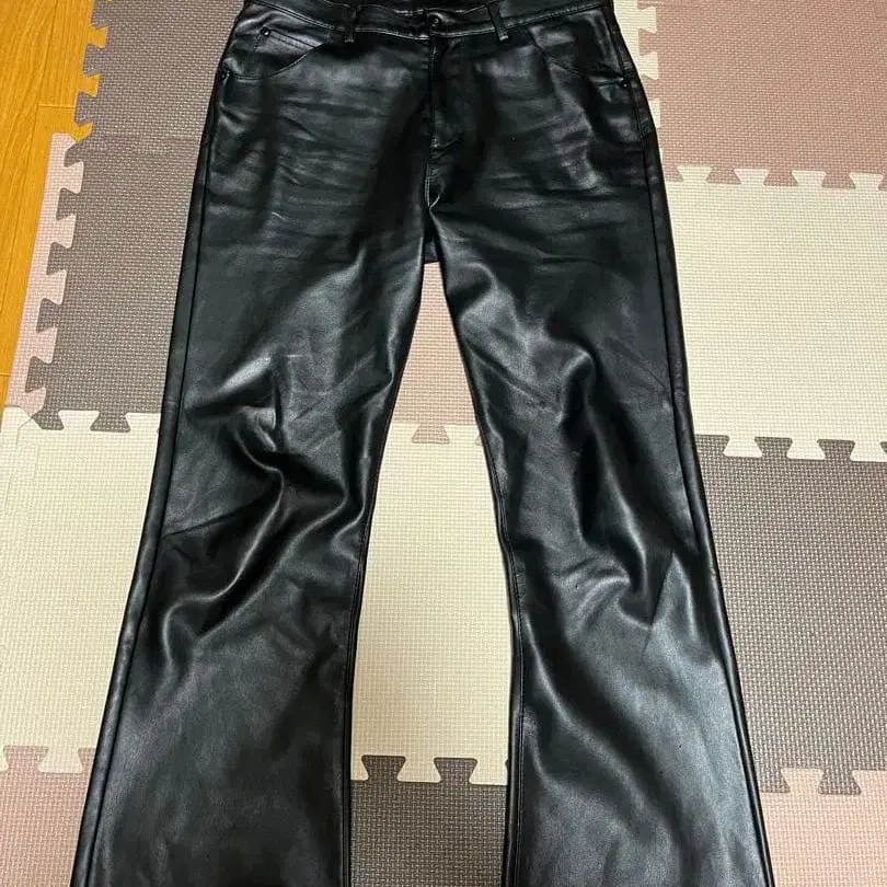 zara 블랙 가죽 플레어 팬츠 백 포켓 부착