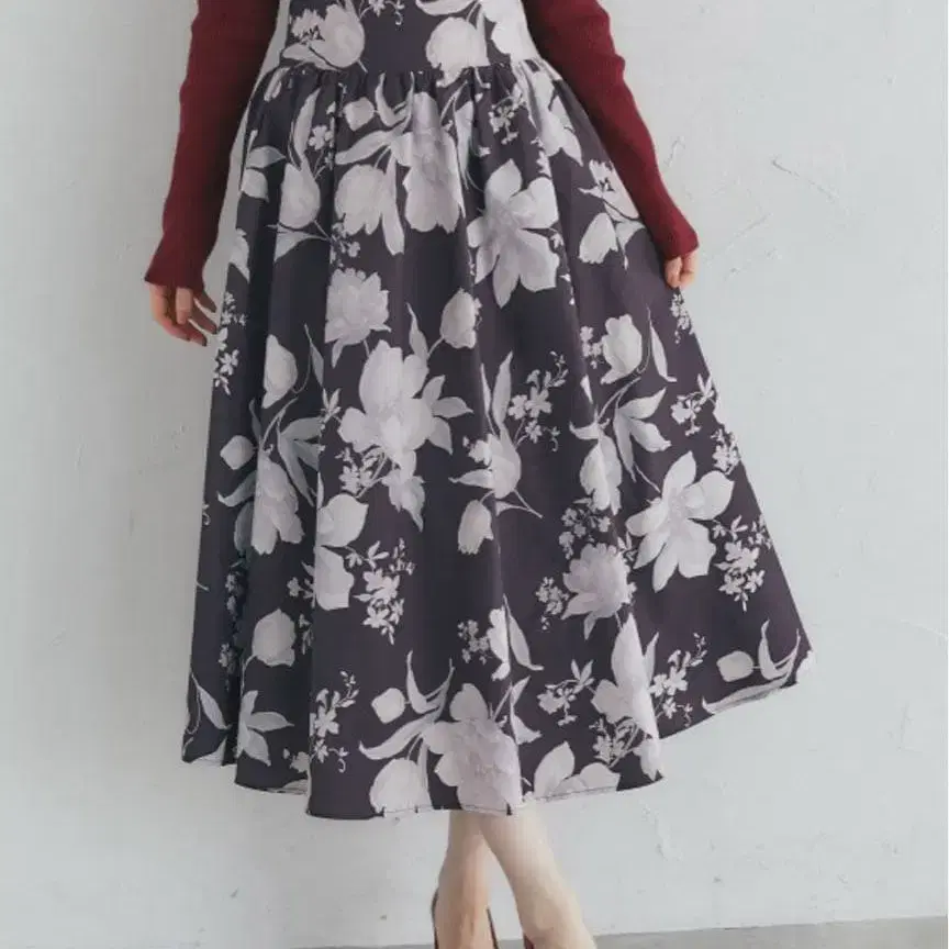 플라워 무늬 플레어 롱 스커트